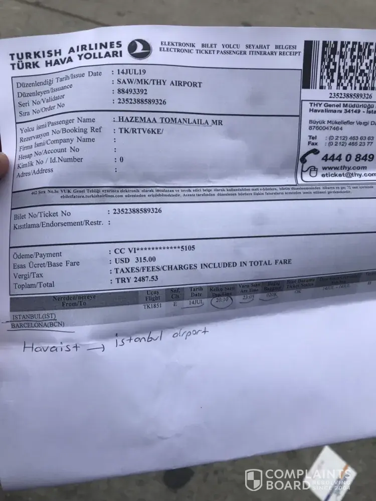 I have booked a ticket from Istanbul (Sabiha Airport) to Barcelona on 14th July 2019, flight no: BC1093. With reservation no: 8M299P- Pegasus airlines, the flight was supposed to depart from Sabiha airport at 13:30 to reach Barcelona at 16:15