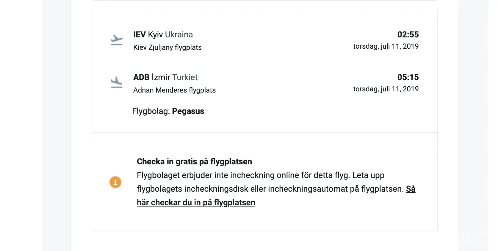 I've had the worst experience with Pegasus today. My travel route was Hurghada to London via Istanbul airport S. Gökçen. I bought tickets in advance, long before my travel, both flights were Pegasus and this is how your provider offered it to me.