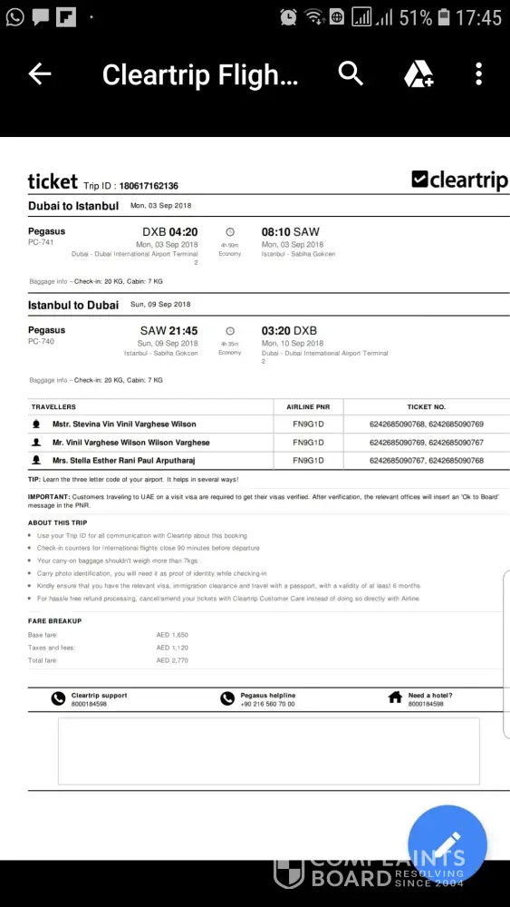 My trip Id is : [protected] also had attached my eticket