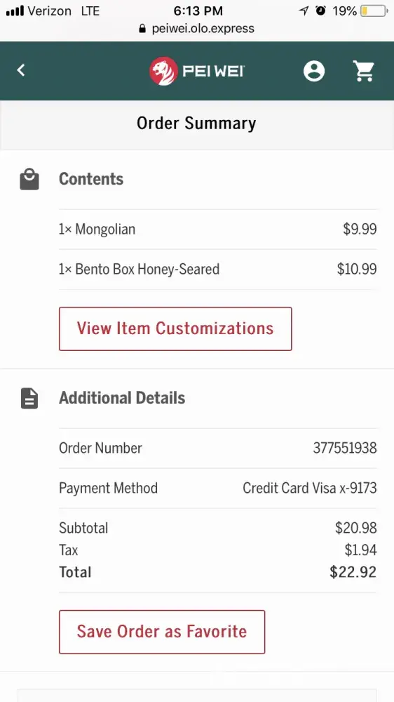 We found clear and detailed contact information for Pei Wei. The company provides a physical address, 2 phone numbers, and 2 emails, as well as 2 social media accounts. This demonstrates a commitment to customer service and transparency, which is a positive sign for building trust with customers.