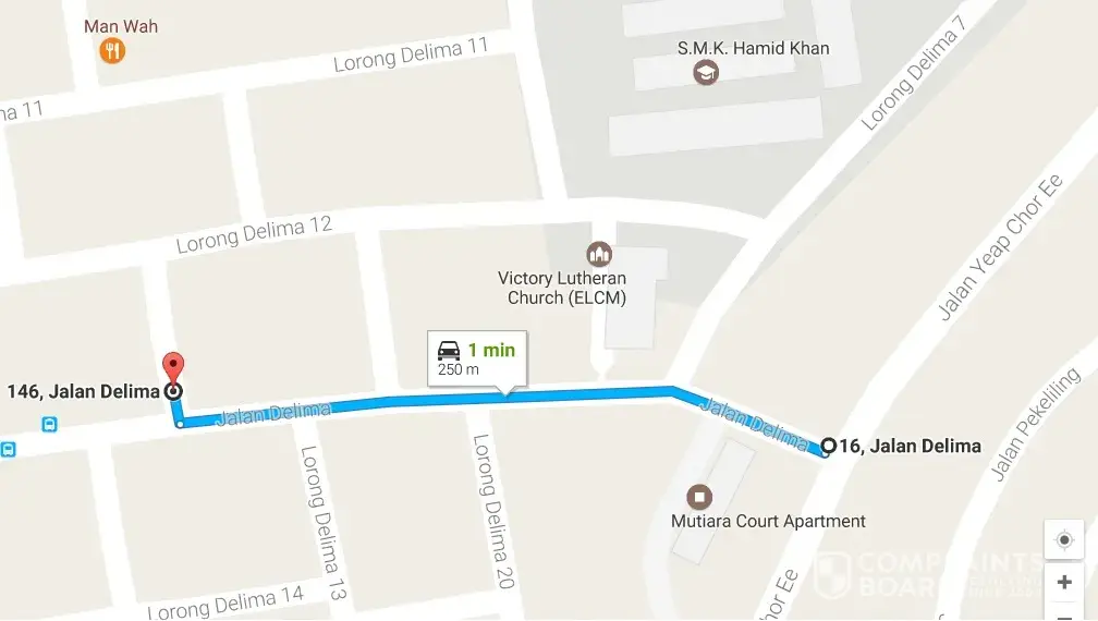 I took a left turn from jalan yeap chor ee's traffic light into jalan delima (As attachment). Immediately after I turned the van is trying to overtake my car from left to right and he was driving very close to my car (About a palm distance). After driving for about 250m, I took a left turn while the van moved to my left, honked me and drive very close to my car which nearly hit the passenger side where 2 kids are sitting by the door. I need to moved my car to the opposite lane to prevent this accident.