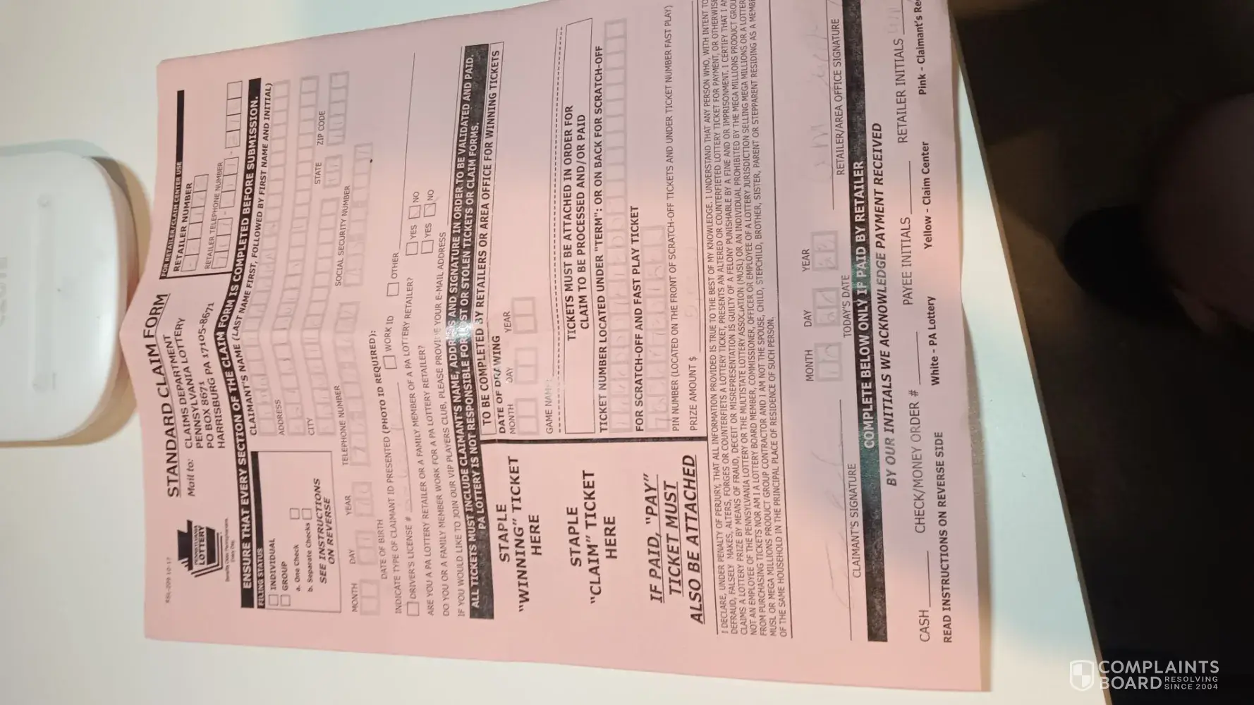 96 Pennsylvania Lottery / PA Lottery Complaints