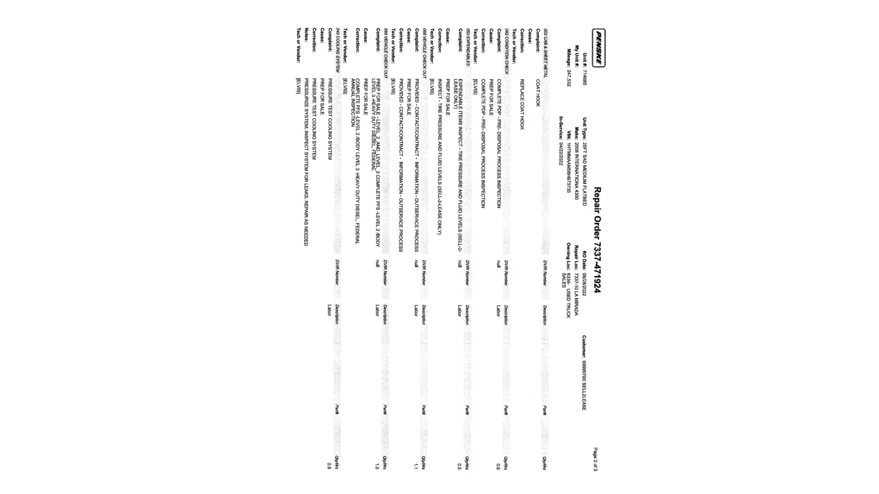 According the repair list you supplied what your company did to make ready this truck was: