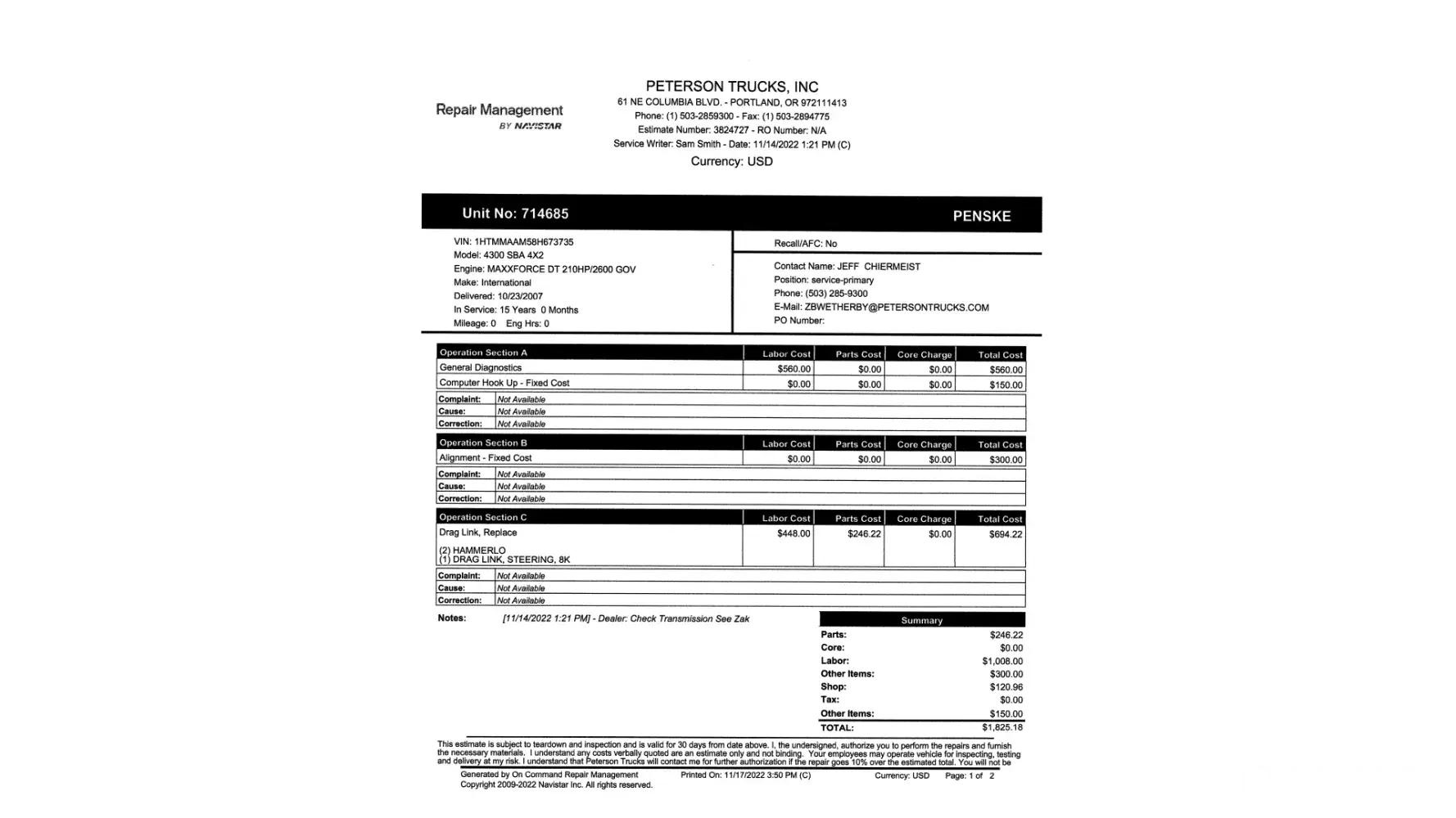 Good Morning …The Unit 123503 that I purchased 11/18/22 is still currently in the repair shop since 11/23/22…From what I was told it has major issues besides the ones that were reported….This is what I get for $65000…This has been a major problem being I just bought a house and have a family that depends on me and I can’t provide because of a bad truck that wasn’t even inspected and repaired properly…It feels like I bought a Lemon…On top of this I’m being charged for a rental truck ….this is sad and disappointing being Penske is at complete fault and the least they can do…I think Penske should do the right thing and review this situation and maybe take this truck back and replace it with another truck similar in price and miles …I’m on the verge of bankruptcy and faultering on my mortgage…i Just want this resolved before I lose everything