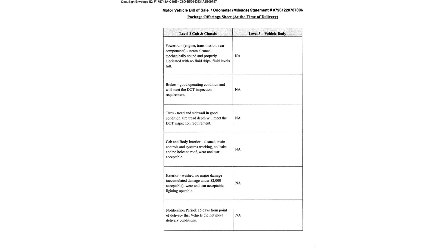 According to your list you supplied for Level 2 cab and Chassis