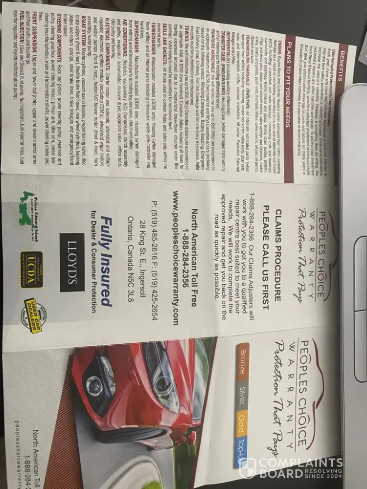 Purchasing my car in Kitchener, I was offered a warranty by Peoples Choice Warranty Limited
