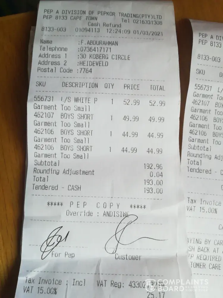 Pep Stores Complaints Page 7 of 10