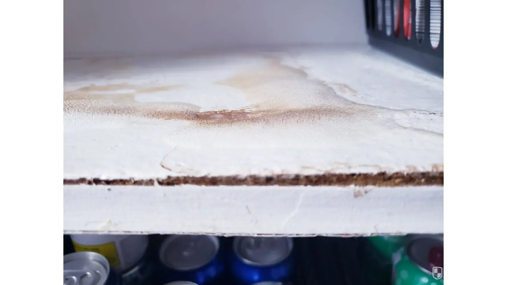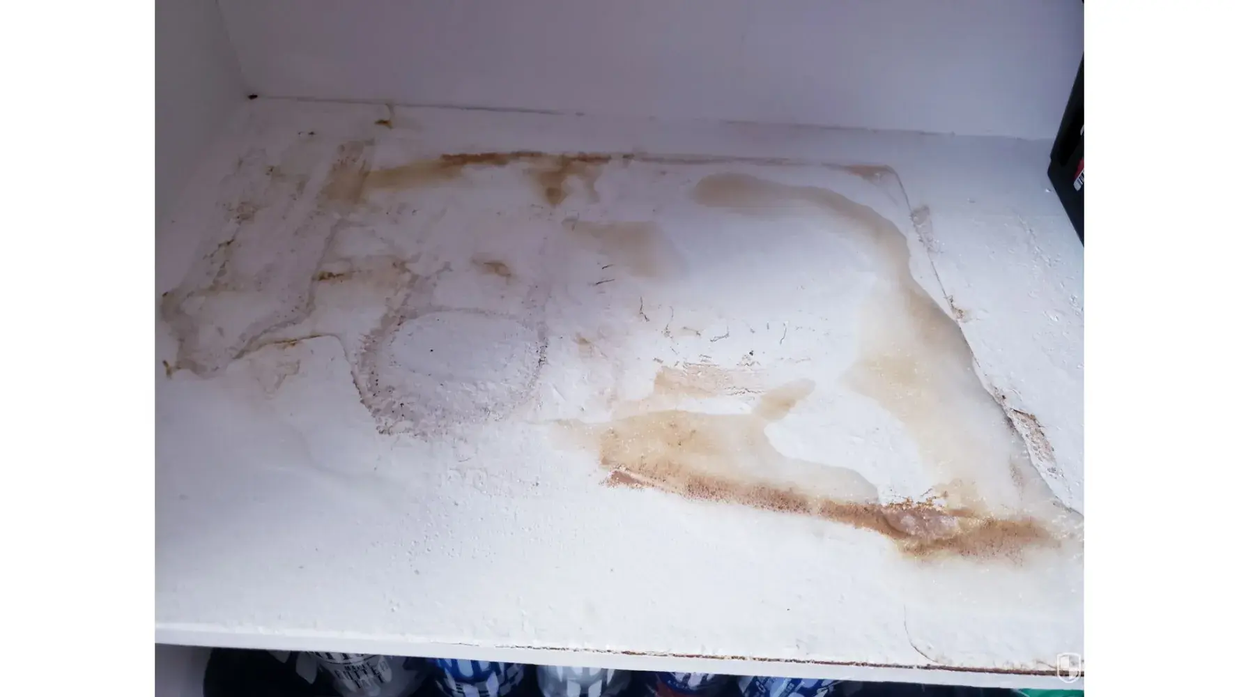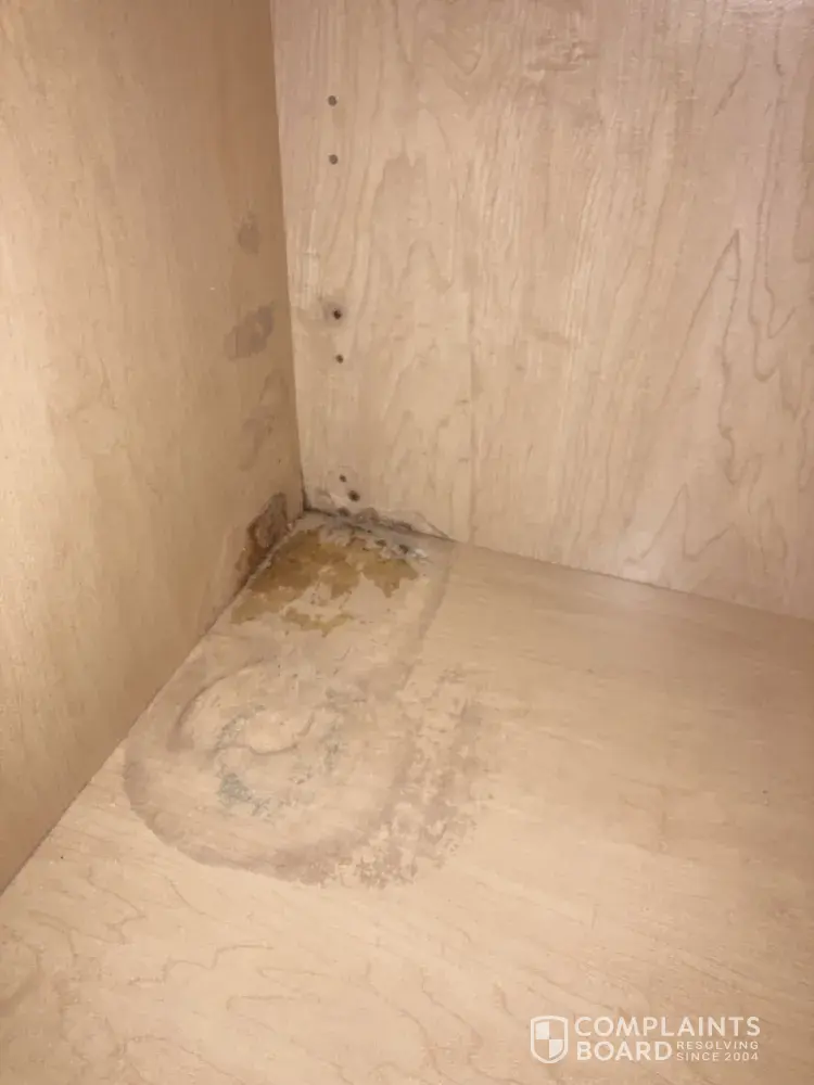 Pepsi 12 pack cans leaked while I was on vacation from July 8, 2023 to September 11, 2023 and the cans damaged my cabinetry, see picture. Note, air conditioning was left on during our vacation at 78 degrees. The damage includes some kind of mold or mildew, see picture. I have attached 5 photos showing the damages and the product (empty Pepsi cans that are unopened) that cause the damage. I see from other complaints that Pepsi has had this problem for some time.