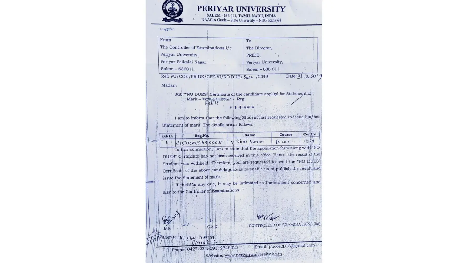 My name is Vishal Kumar DOB 04/06/1995I have completed my( B.com )In periyar university in the year of 2018 Register No. C15UCM13690005 i have received my mark-sheets a long time ago, however i am waiting for the Provisional certificate to be received, i need the provisional certificate and final marksheet on an urgent basis as it has already been 2 years that i have received my mark sheets. Can you please suggest me a way to get the provisional certificate. I have deposited all the fees to the university