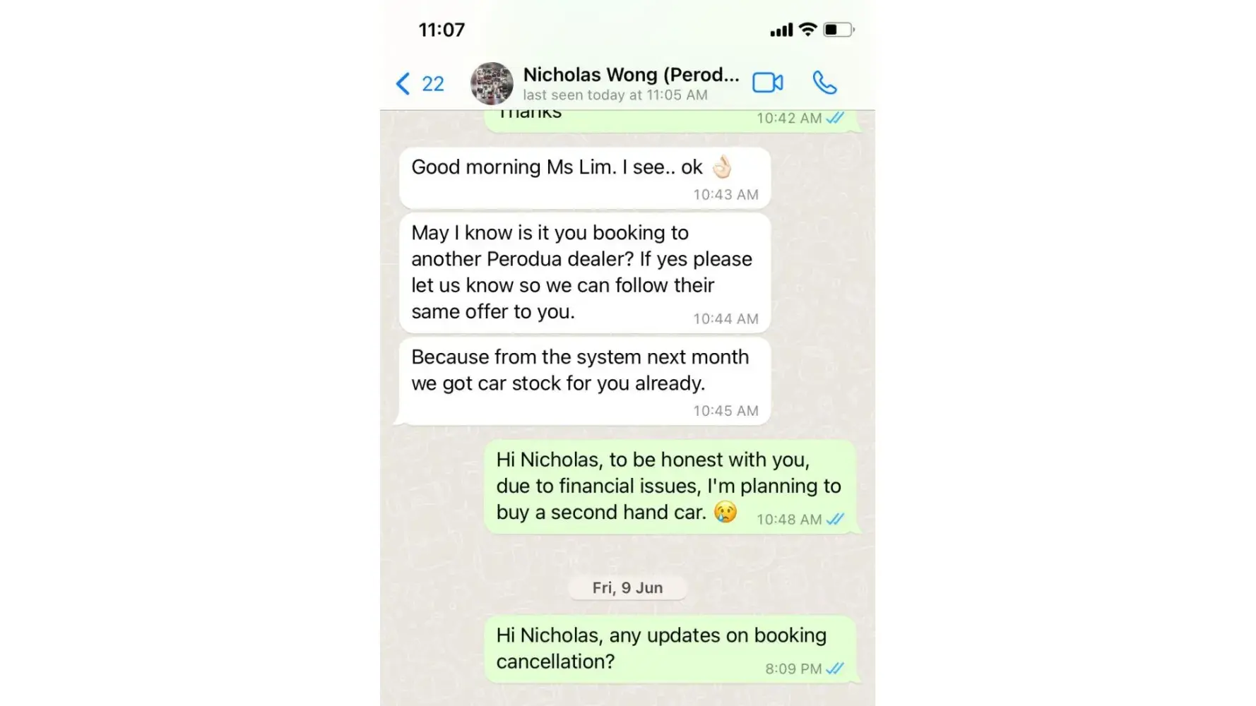 I think that's all, Perodua. Please train your sales advisor to be responsive to our questions. If she can goes online all the time, why can she respond to my messages?