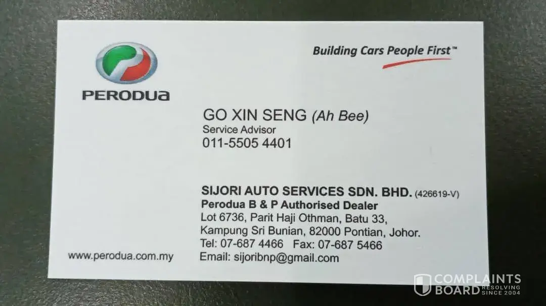 I urge someone from the SENIOR MANAGEMENT of PERODUA will pay full attention on my problem above.