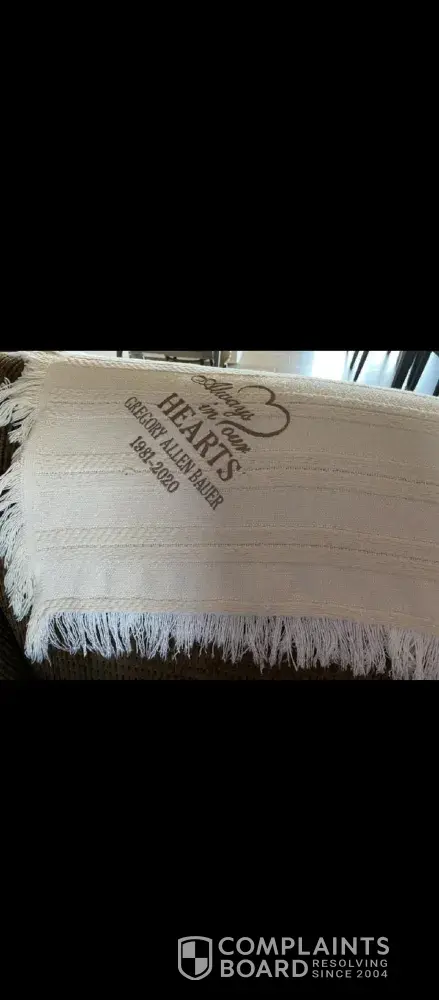 I purchase this blanket a lot from you all, for my friends and loved ones who lost someone dear to them my friend just sent a. Picture of the end frailing discoloration this blanket is $75 with tax and all should last a bit more than a year... I want to continue purchasing from you all my name is renee erwin 11411 semillon lane louisville ky 40272 phone [protected] if you need to search past purchases.. I have bought 3-4 of these blankets this is the only one with the problem so far... Please help