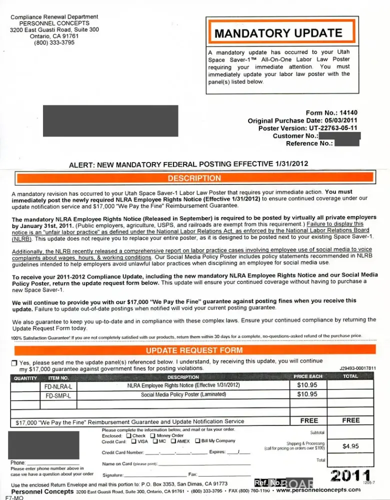 Beware of Personnel Concepts' Pushy Upselling Tactics for Labor Law Posters