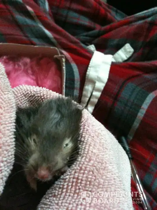 It makes me sad the immaturity of some of these posts. The hamsters welfare is of the utmost priority, that is all that should matter to the pet shop. This is clarified in their license. Arguing over whose fault it was does not matter, once the hamster was discovered the staff should have done everything in their power to decrease suffering, even if that meant euthanising. Well done TD6 for trying to help the hamster, I know personally how heart breaking it is when an animal you try and save dies anyway. Even if the hamster was born sick and was going to die anyway, as certain users have stated, the pet shop should have done regular health checks (anyone in this business is taught that - I know this from personal experience). and the hamster should have been dealt with, and not left on display. Judging by the photos the hamster did not become suddenly ill, and it is the responsibility of the pet shop employees to notice these things. It not only fails animal welfare laws, but trading standards laws, for after all, they are a business. Making excuses for such a business is a failing on humanities part. Certain businesses (hospitals, boarding kennels, pet shops, child care establishments) cannot have excuses made for them, as they are in charge of life, and by not being responsible they can cause suffering.