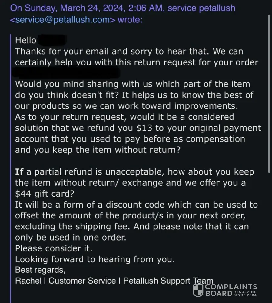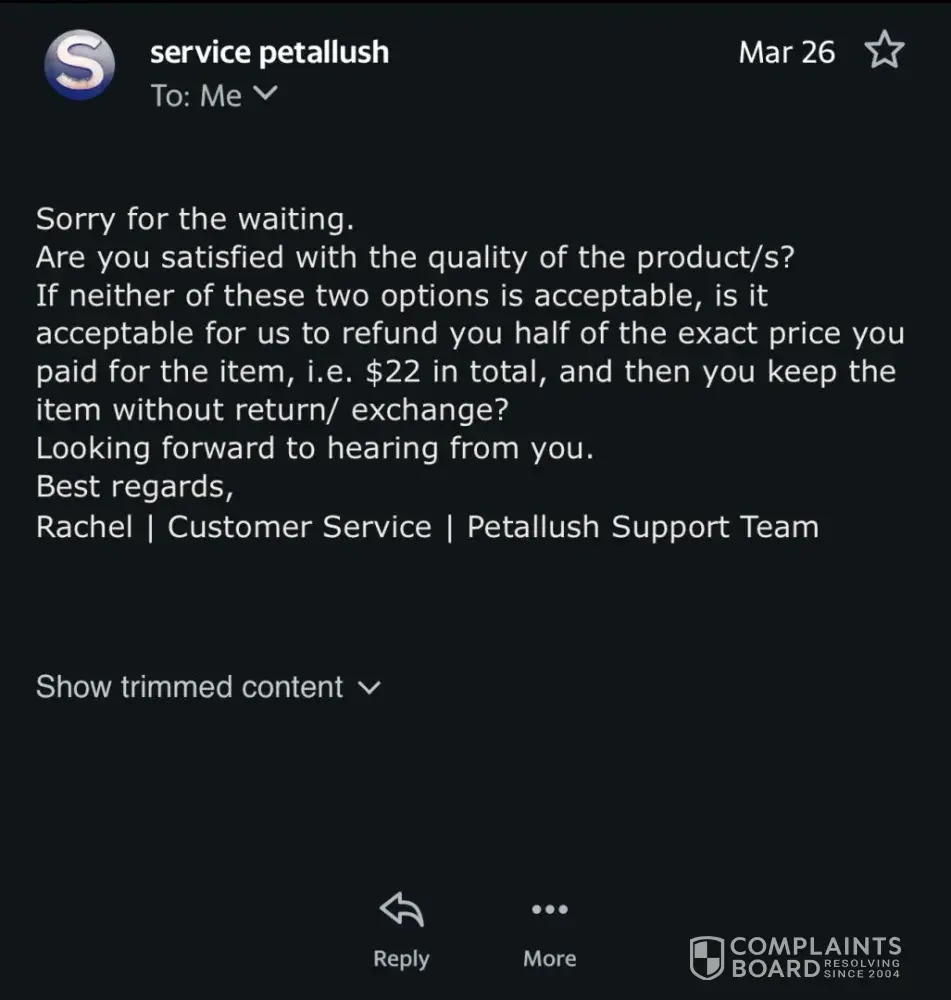 Disappointing Experience with Petallush: Partial Refund and Poor Customer Service