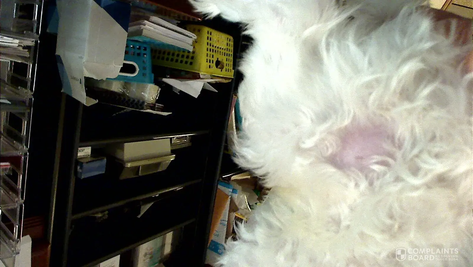 Severe razor burn of the right buttock 40mm x 40mm while grooming charlie, an 11 month old maltese puppy on 9/28/22