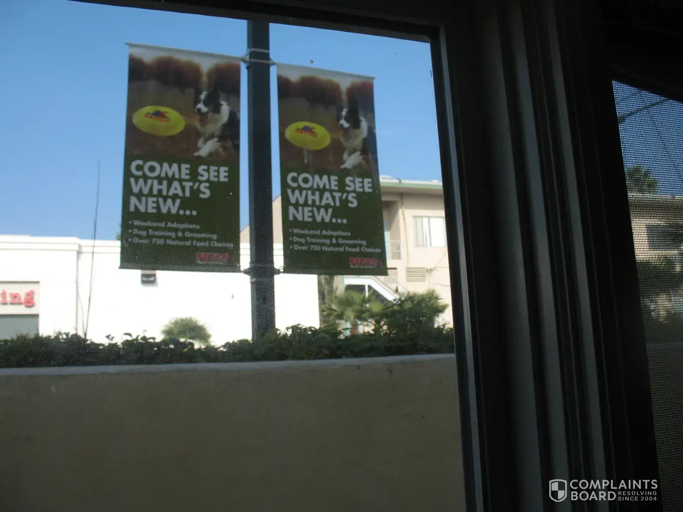 My building is right in back of a Petco parking lot. Over the years my neighbors and I have complained about late night noise coming from theirs delivery trucks at 5Am or past 10Pm. They are never willing to be considerate, and often pass the blame to upper management. If they can legally get away with something they will. Recently, I looked out my kitchen window to find a new eye sore (see attached photo). They put up banners in the parking lot that face my building. The banners can not be seen by the public until they are in the Petco parking lot, so they are not bringing in business. When I brought that up to the Manager, she agreed with me, but would not take them down. Her regional manger wants them up. They care nothing about working with the community.