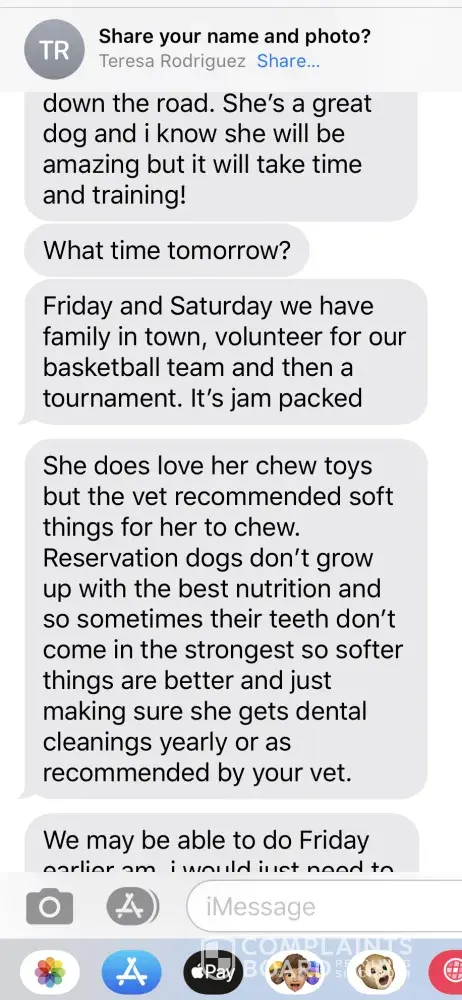 After being told I was ‘perfect' for Roxy, I waited patiently for a response. I filled out a 13 page application! I had my previous pets records sent to [protected]@outlook.com AND Petfinder.com. I sent invoices showing pet care of my previous pets. So, every 5-6 days, I texted them? Anything? ‘Sorry, very busy', she said three times! She went from warm to cold! Then came the horrible Texas winter storm. ‘We're busy because of the storm', she says. Finally, after waiting weeks to find out when I can go meet her and pick her up I go to my emails and find the link where they accepted my application for her and hit it and lo and behold. They gave my promised Roxy to someone else saying I didn't prove I had given my previous baby Heartguard. I sent invoices showing I purchased it, pictures of the boxes I still have of my previous baby's Heartguard. She refused to even answer me, and finally sent a short, terse note saying it wasn't enough info! She went from ‘you're great and Perfect for Roxy' to utter silence and giving her to someone else. I was treated horribly! Not only that now these people have enough info on me for a top security clearance. They have way too much of my information and they are not trustworthy. Do yourself a favor... Save yourself a broken heart and knives in your back and heart and deal with ethical people who return your calls, keep their promises and don't lie and steal massive amounts of your personal information. Especially [protected]@outlook.com at +[protected].