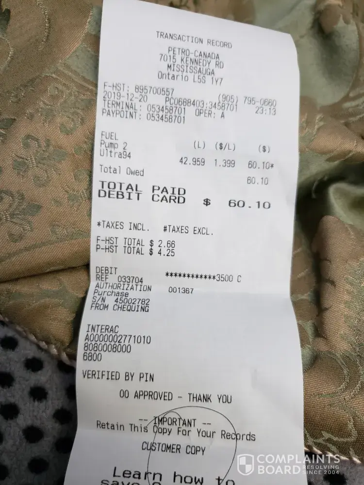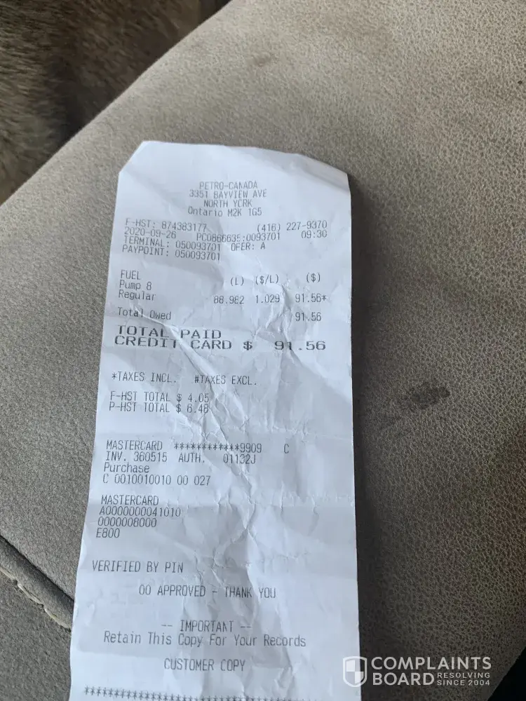 Unethical behavior of Petro Canada Employee
