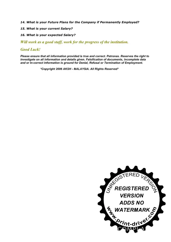working days as a proof of readiness to join the (PETRONAS OIL COMPANY) project team in the due time
