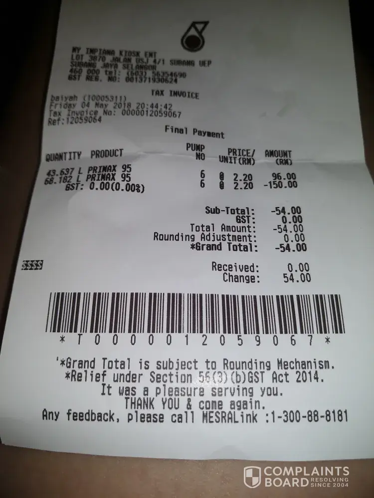 On 15/10/2017, I been went to jalan lobak petronas station to fill the petrol (only 1 time). however, once I received the credit card statement, I found out there are 2 transaction charges in my statement.