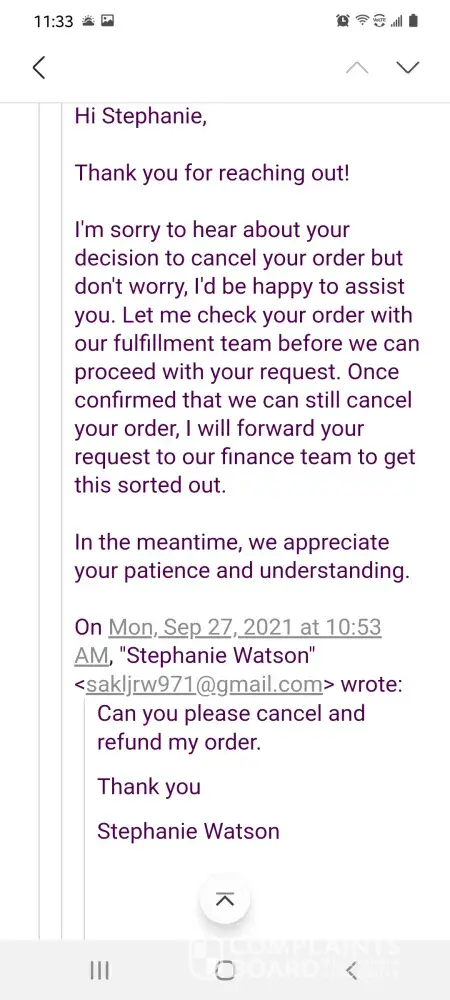 I have tried emailing the several times and have heard nothing back. I have filed a complaint to the BBB as well.