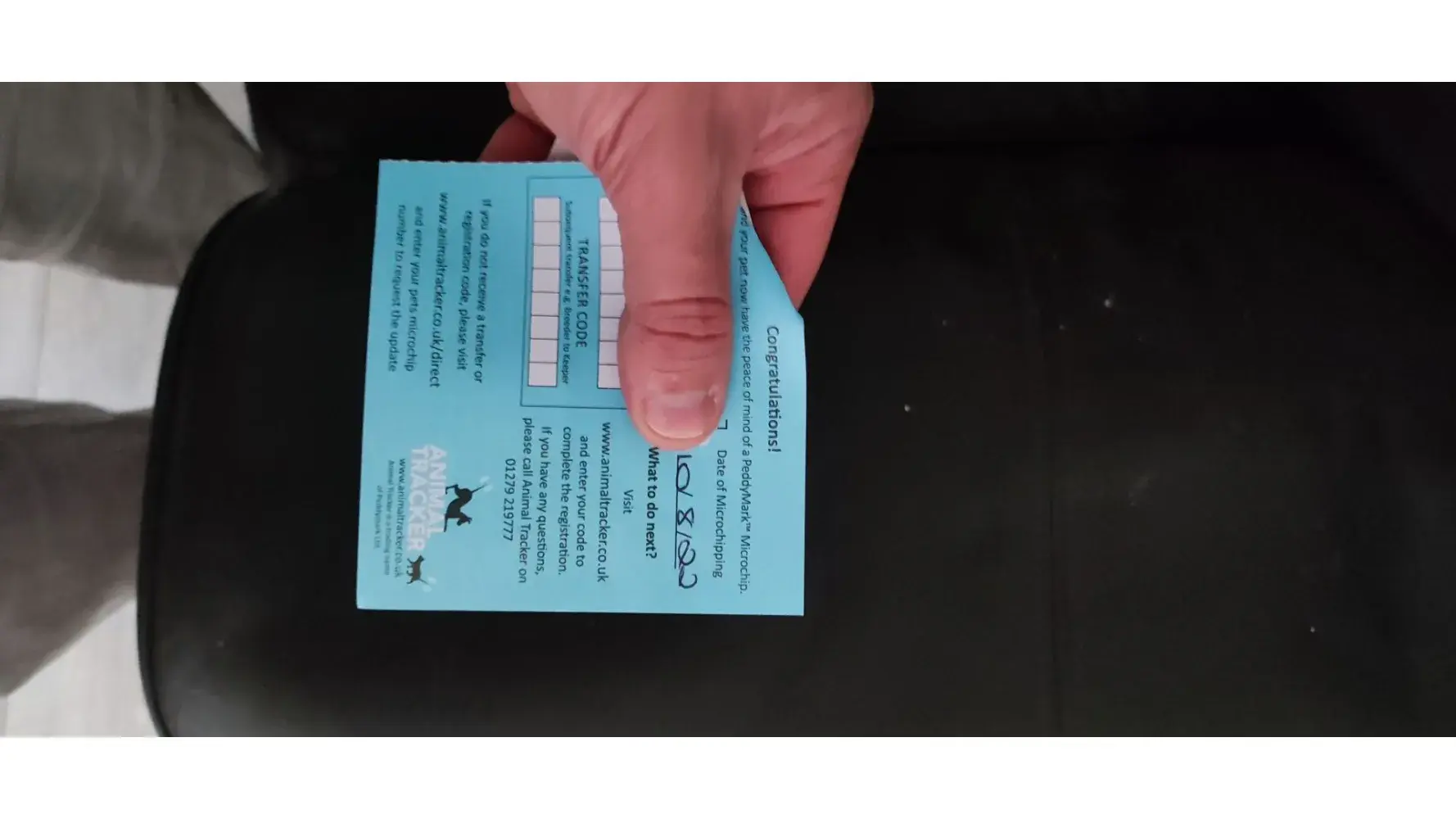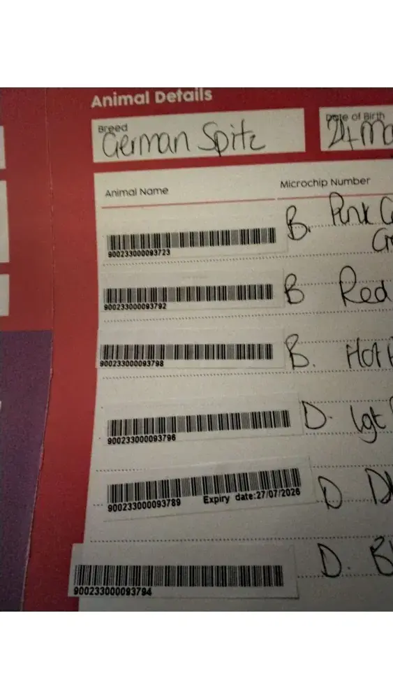 I've sent a photo of the microchip information with the numbers hidden of course for obvious reasons.