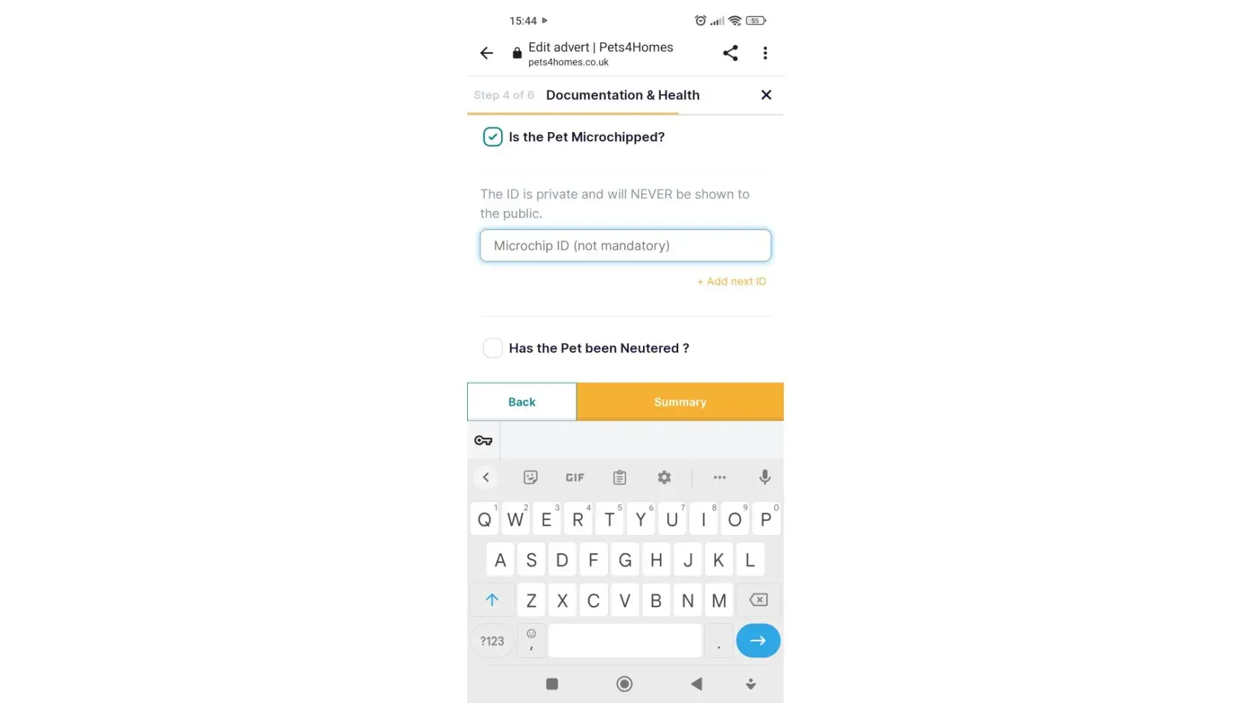 It clearly states in the edit section but the microchip ID is not mandatory.