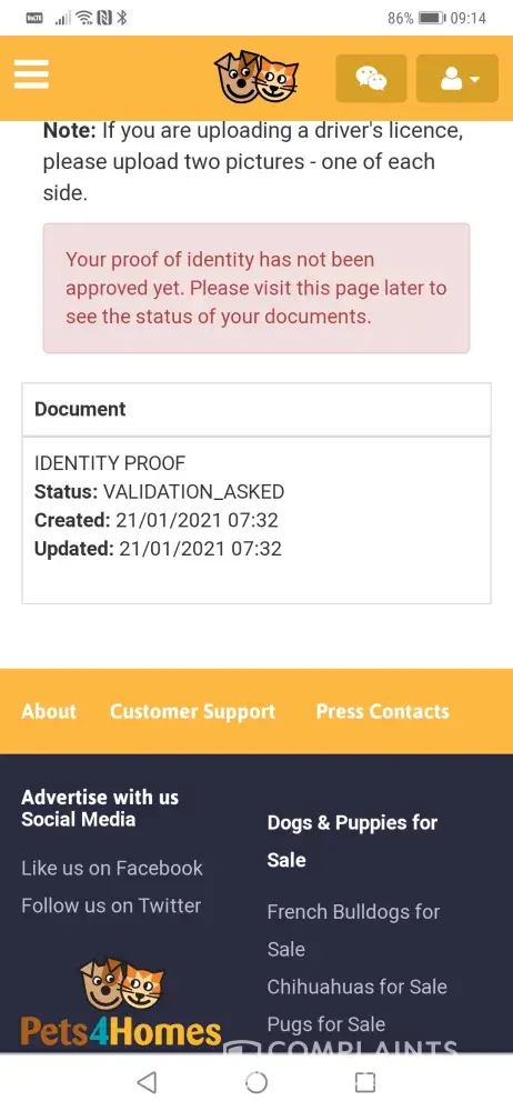 I have been using pets4homes now for over 4 years someone is reporting my ads and now pets4homes as blocked mine my friends and family accounts for "No reason" they have asked me for proof of ownership of my dog and proof of address and d.o.b which I have gave still had no reply after 7 emails to them it's all been very stressful and upsetting if I'm honest I want to give my pups good loving home and that's why I have always used pets4homes and because it's safe to do so on there there way iv been treated is unfair and seems like mine my friends and my family's ads are being "looked for" if I'm honest it's really confusing as I no I'm not doing anything wrong.
