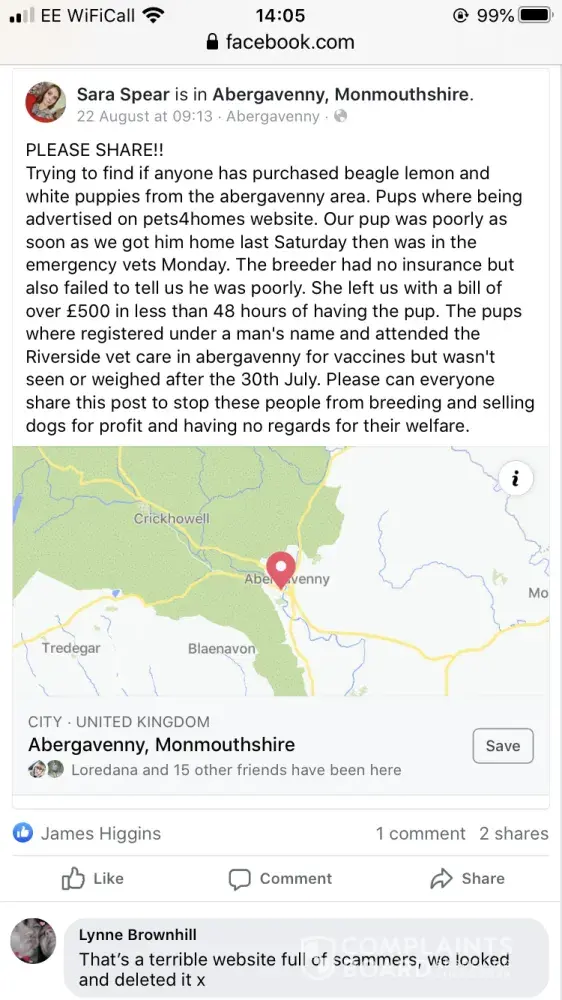 There is a recent post on Facebook with regards to someone buying a beagle puppy from a place in Abergavenny, who had advertised the puppies for sale.
