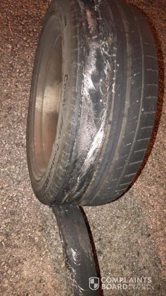 brand new tyres burst twist at rear right (driver side) in while driving in highway. putting my life and wife in risk.
