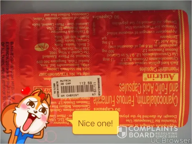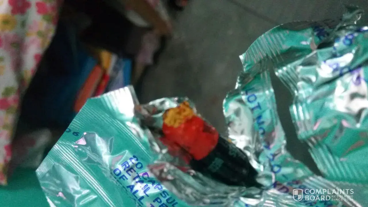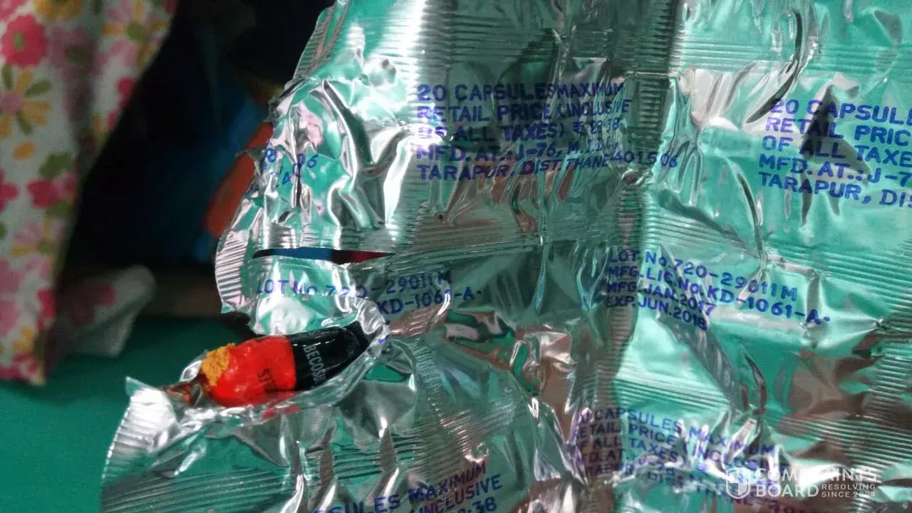 I purchased one strip of b- complex capsules strip in that i found two capsules are sticked to foil in burned condition which is very dangerous, as a big brand i never accept this type of packing.I will just want to complaint to drug department of india.the images are attached for your reference and proof is with me.