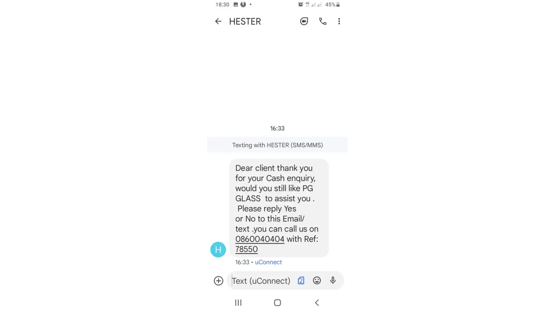 I received another sms on Thursday 5 January 2023 12H00 stating that PG glass had been unable to reach me. ANOTHER BLATANT LIE, as I had not received any calls that entire day.