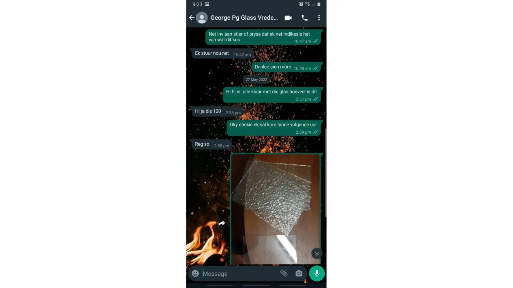 We were in contact with an Employer at the Vredenburg branch via WhatsApp requesting glass to be be cut for us as we are busy with repairs at home
