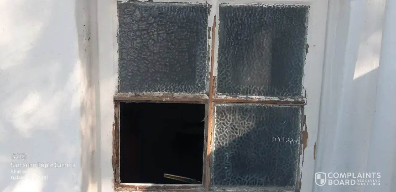NOW we are sitting with a front door and bathroom window with now glass and this leaves us exposed to crime
