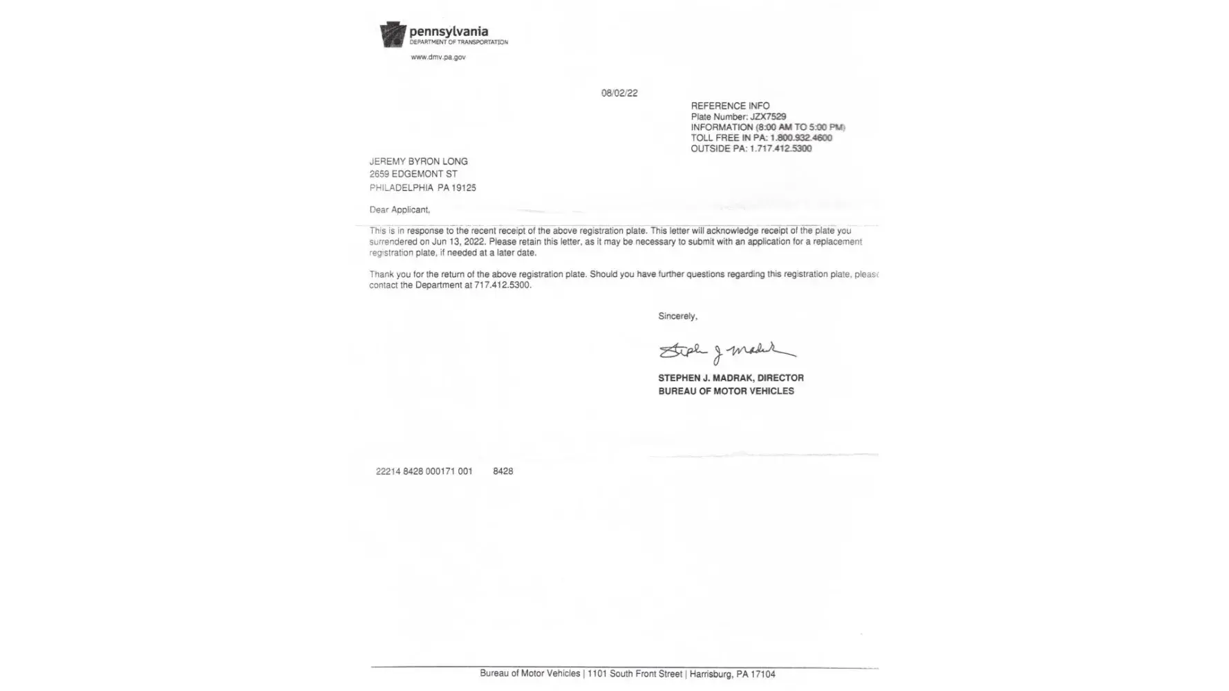 I was never aware of that until I got a parking ticket from the city of Philadelphia, I did dispute the ticket, and my explanations that I don't have or used that plate for over a year and that I never owned that car that committed the violation were not accepted, I did start a dead plate process with the state see attached and when I submitted the documents there were never reviewed,