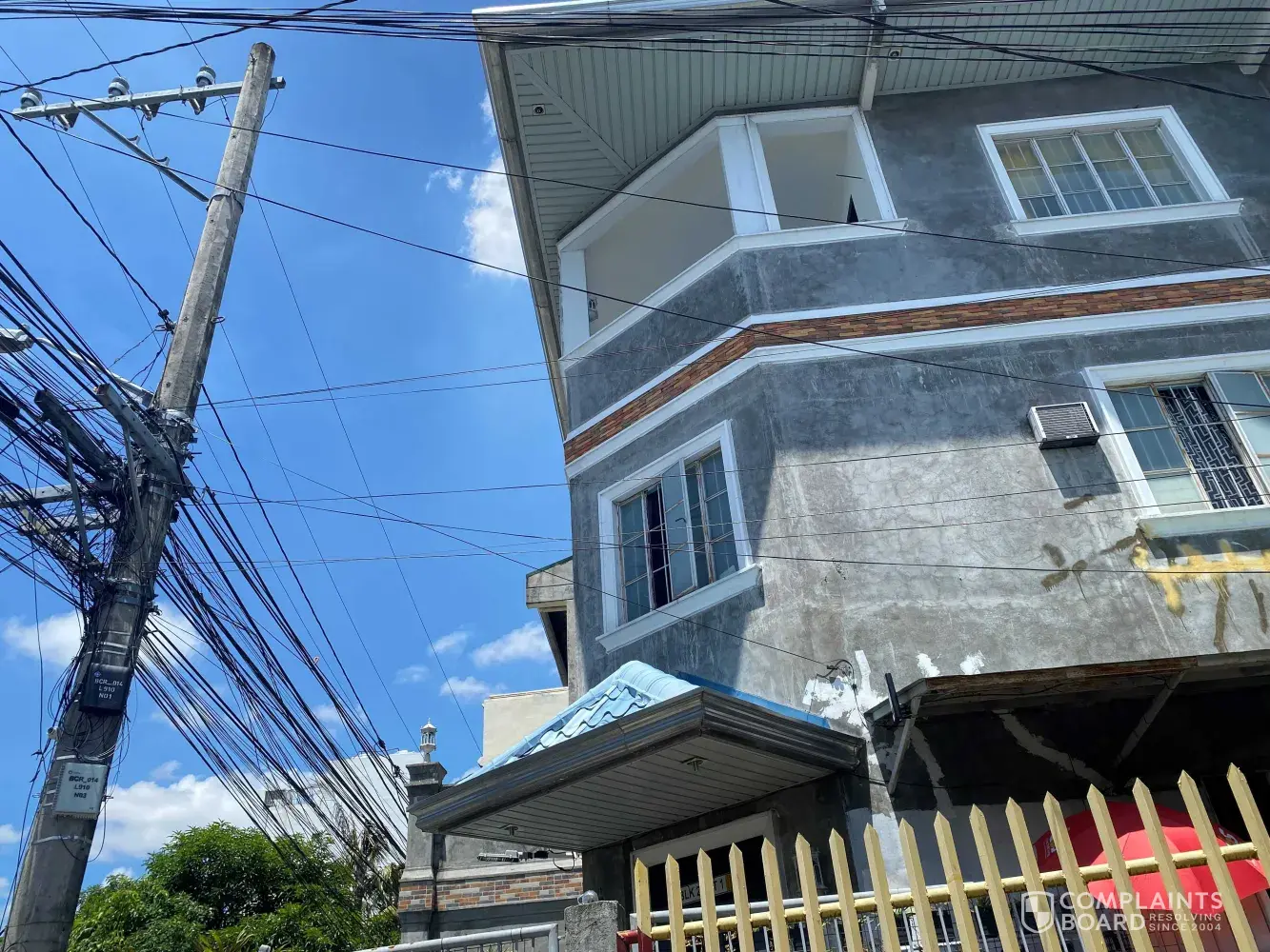 As you can see in the photo, our property is situated in the corner lot where electric pole is present along the sidewalk, there are numerous wires attached to this pole and some are properly connected and some are badly installed.