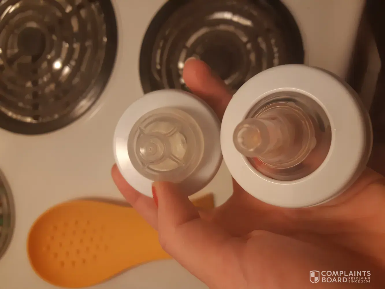 Secondly I have at least 5 bottles with the tops that come off, my nappy bag was completely soaked today! The top had come off and leaked everywhere. The nappy's, change of clothes and the worst thing is I had a screaming baby with no milk to give him. I was fuming. I feel like the staff are not understanding my complaint. When I wrote about the second problem I got no response at first then they have not given me a solution! I can't express my anger or irrational, I seriously wish I'd chosen Tommy tippy, unfortunately I chose avent. We have everything avent. We have a bottle warmer, complete waste of money( but that's not your fault, we just never use it.) expresser, steriliser, bottles, bottle bags to keep the bottles warm, milk dispenser.