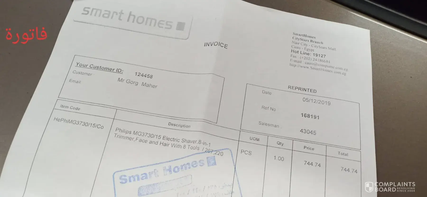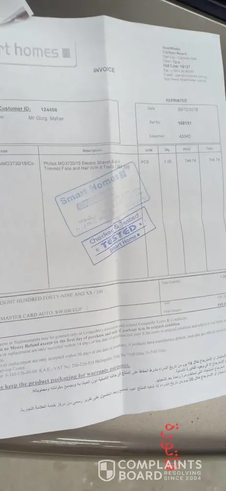 the complaine will be raised to the consumer protection agency here in Egypt and they will check the complain to make sure that my right will be back to me as your franshise refused to return the devise after they checked by themselves that the box include a print for a wrong info about the devise