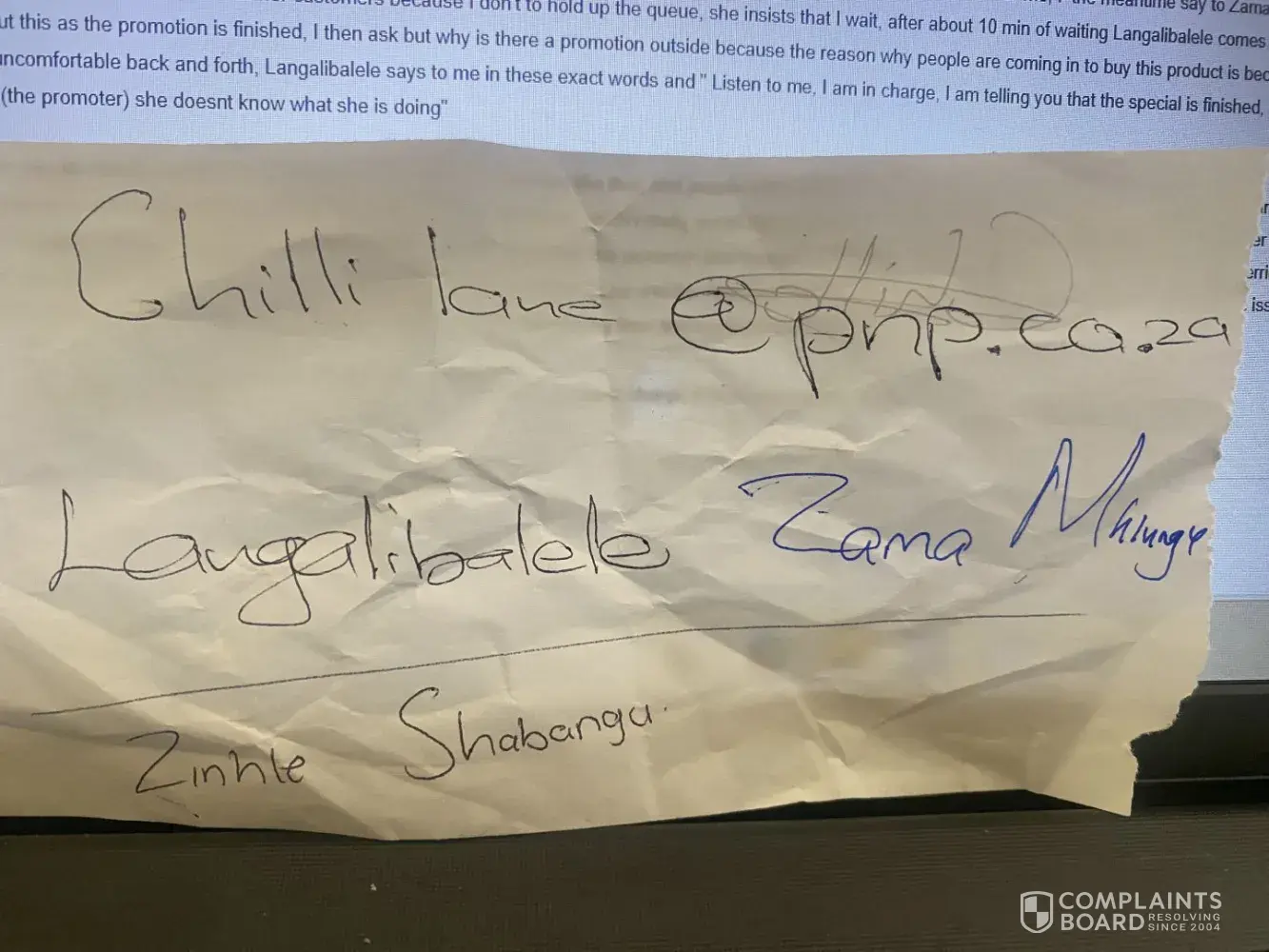 I hope this message finds you well. I am writing to share my recent experience at the Princess Crossing PnP store, which has left me quite disappointed and reconsidering my loyalty to your brand.
