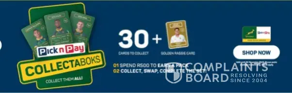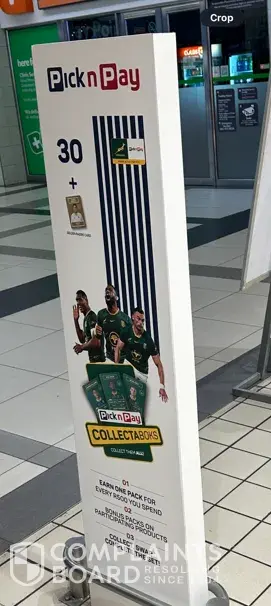 Dear Pick & Pay RE: MISLEADING & DISCRIMINATORY MARKETING PRACTICES BY PICK & PAY I would herewith like to complain about the misleading marketing campaign you have with your "Collectaboks" rugby cards. I this evening had an unsavoury experience at your Key West, Krugersdorp branch at around 18h04. My Grandson collects these cards and I specifically...