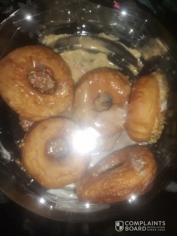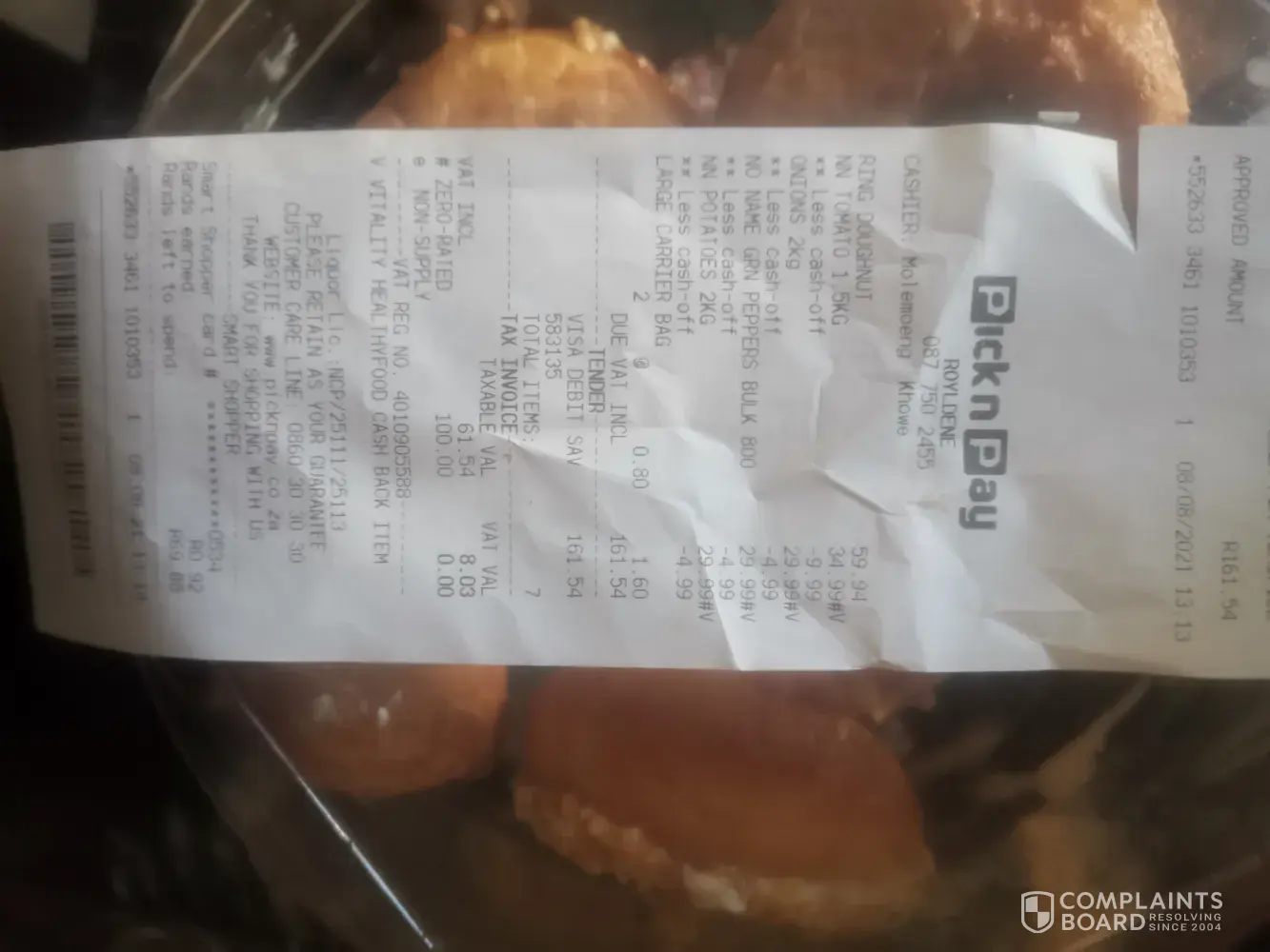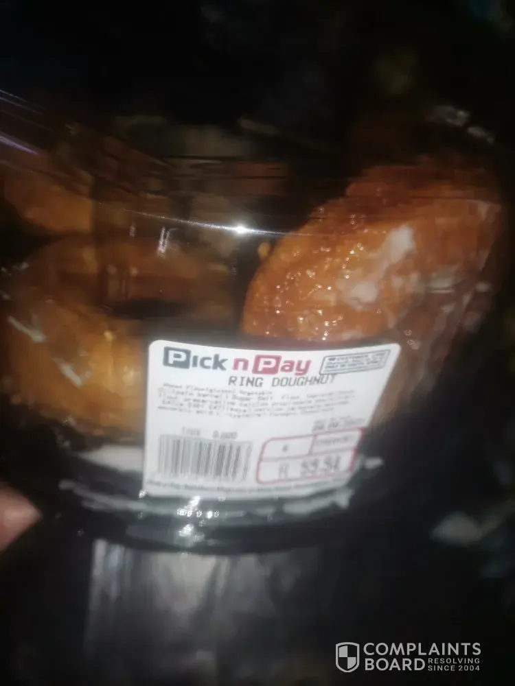 Hi today I bought donuts at pick n pay Rhondesdene for R60 buy one get one free special to my surprise the donuts were stale to a point that warming it didn't even soften it abit! I been wishing for donuts for so long but this right here was very disappointing to say the least.. I got the slip and took pictures.. I wish I took note of it while I was in the shop but you would think if you are paying R60 for donuts it will be fresh! Not even the dogs wanted it..