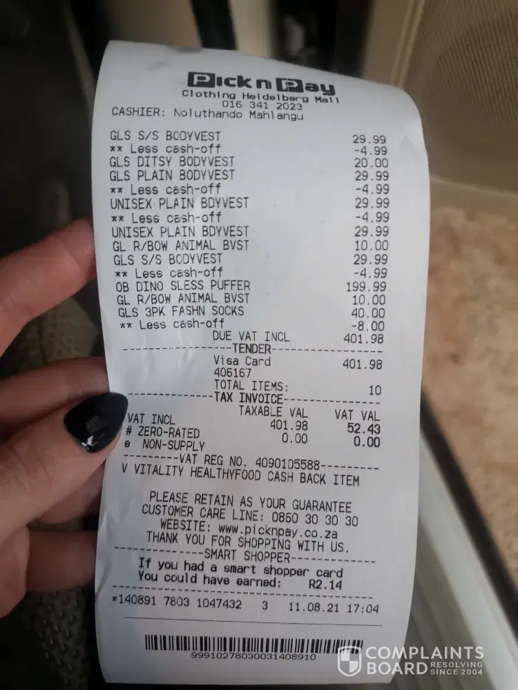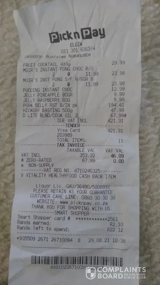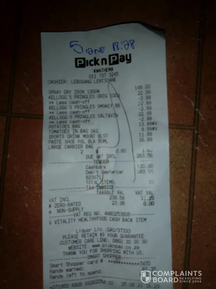 Today 29/08/21 I decide to return the Iron back to Pick n Pay Kwa Thema