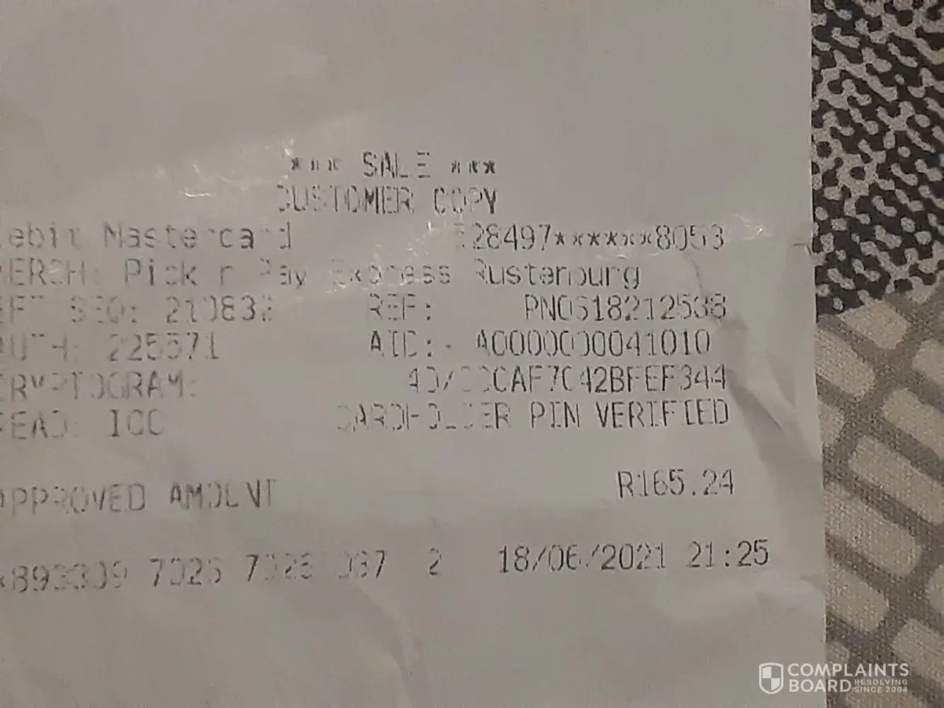 I went to Pick a Pay on the 11 June 2021. I went to buy buns and tomatoes, as I went to the till and slide all to the casher, I took my wallet out off my handbag the lady at the till ask me did I inform the guard at the doors about my spay and a bottle of chewing gum 6 in it. I said no because I always just walk in with my back and also I know it is wrong my back is always open.