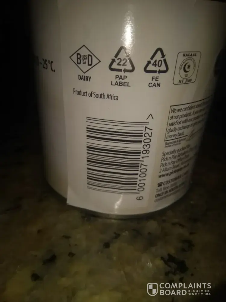 Good day, I would like to bring to you attention that I have a problem with your Condensed Milk. It is the second time now that I opened a tin for making a salad this time, that I found a foreign object on the inside. I was preparing for a friend's and family braai on Sunday, previously it was for a pudding. I am really distraught with this, and am worried that we might get sick from this product. Not sure if I will continue buying Pick 'n Pay branded products any more. We live in times where we need to be so careful of sickness and diseases, and this is absolutely the last thing I would expect from Pick 'n Pay, and the last thing I would like to subject my loved ones to. Your quick response would be appreciated. I attach pics for your attention.