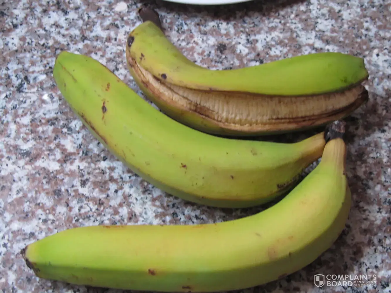Desired outcome: The bananas I purchased were unfit to feed to the monkeys. Sack the fruit and Veg manager for incompetence and fraud and refund the money for my pack of bananas.