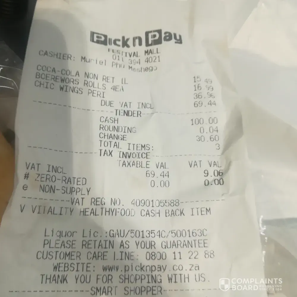I then left and came back with the slip and he told me so rudely to stand in the line for my refund after I came back from work which is close to pick n pay that's why I buy food there
