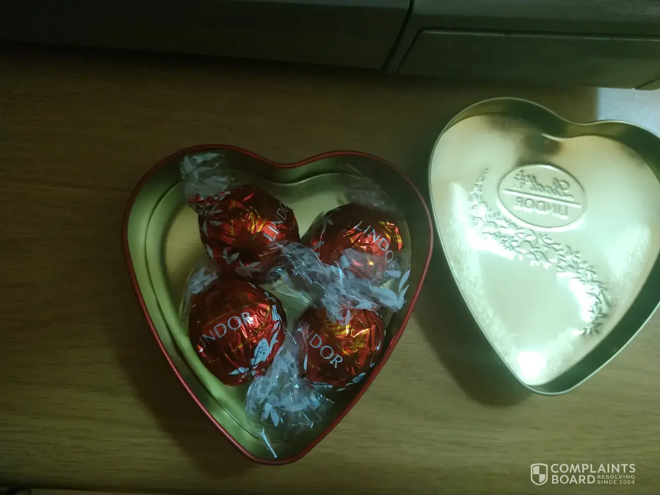 Hi, I was so disappointed, to find 4 lindor sweet in the tin I just bought instead little hearts.I need explanation from the picnpay in Somerset West main road store.Are you people try to lie or what?I have no words!
