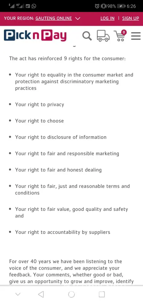 I'm not writing this because I want to win or wanted to win but why would you do that to people get them excited and drop them a whole one cent later. I think you should remove that whole one cent from your promotion as it is really disheartening and embarrassing. You spoilt our afternoon as we didn't expect anything and then couldn't understand why would pick n pay do something like that. Even the manager and assistant apologised to us cos they felt embarrassed.
