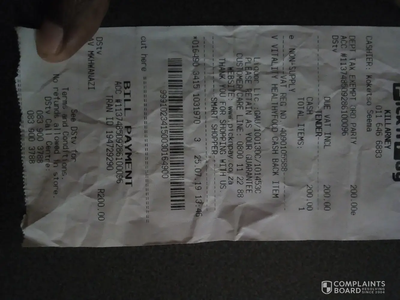 I made a payment for dstv at pick n payment, l gave the cashier my correct details and ID number, she made a payment to the wrong account. I gave her details as written below.
